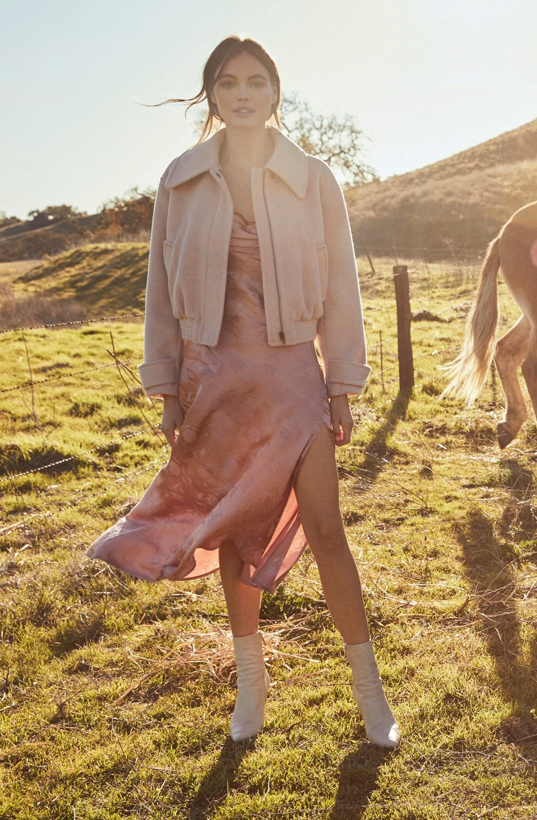 As the cold settles in, it’s time to bring the Andrea Jacket out to play! It features a shearling construction for ultimate warmth! Pointed collar leads to a zip front. Slanted flap pockets at the hips. Long sleeves.