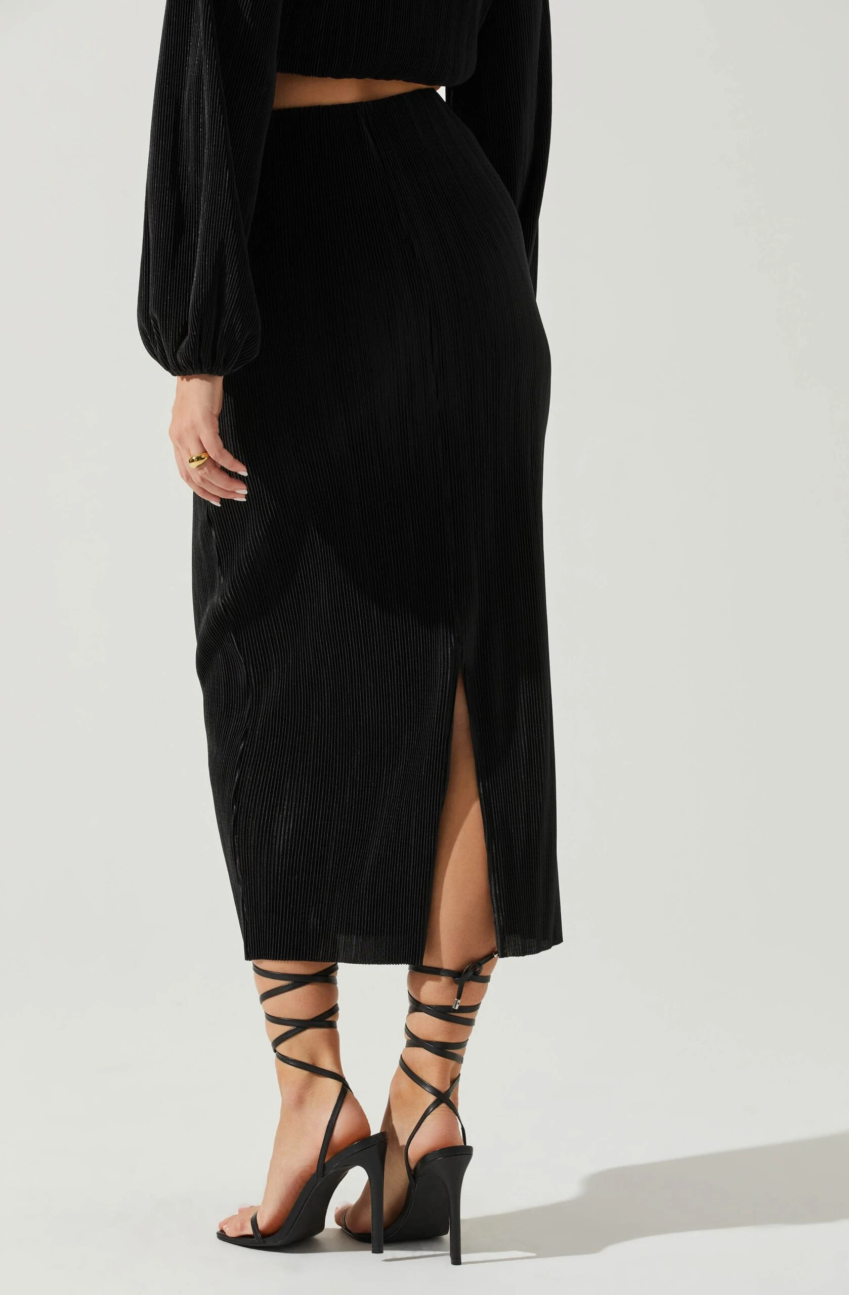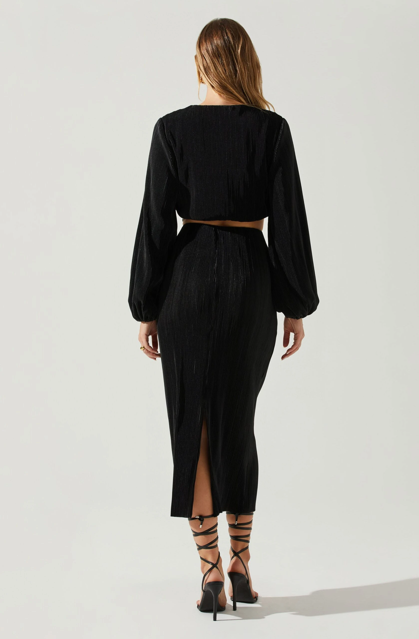 Plisse texture enliven our Cateleya Skirt, designed in a flattering midi length; the slit detail on back ensures ease of movement. Pairs perfectly with our matching Cateleya Top for date night or a girls’ night out.
