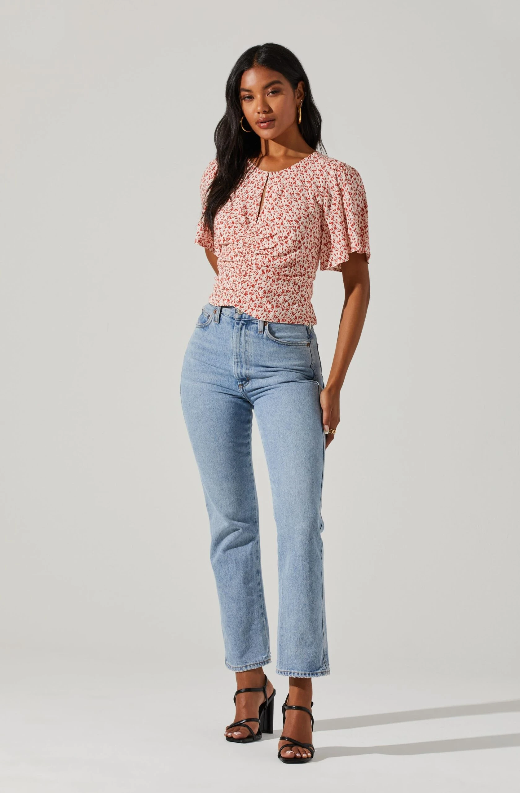 Be the first to review “Floral Key Hole Flutter Sleeve Top” Cancel reply