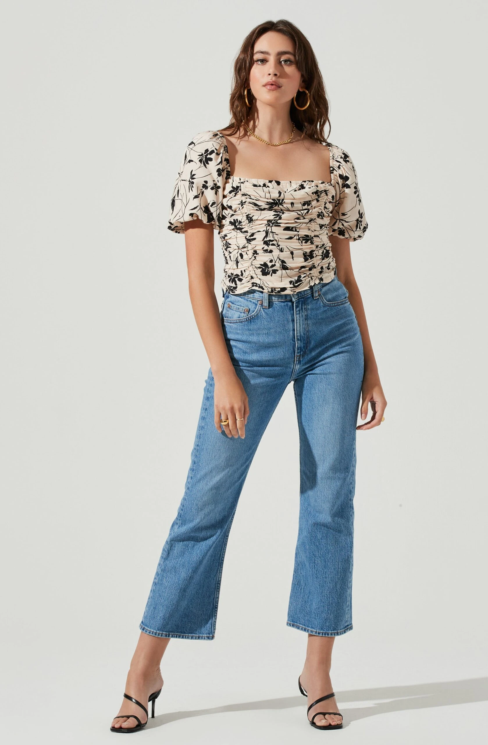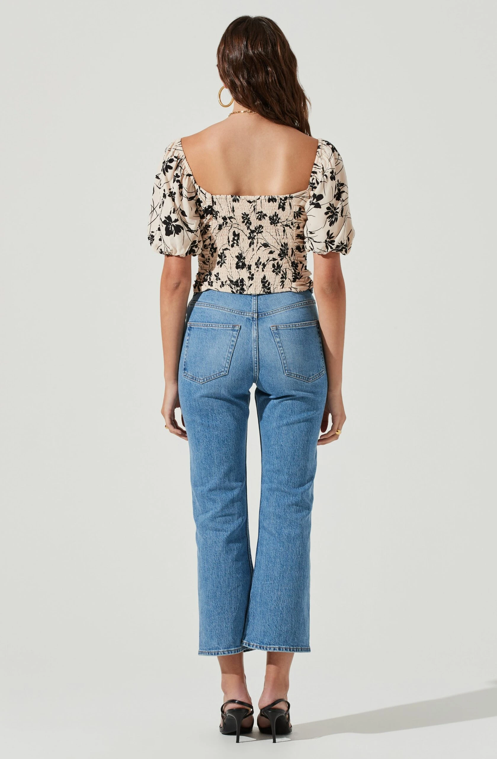 The Florian top features a statement floral print with a square neckline, bubble sleeves and ruched design. Smocked back.