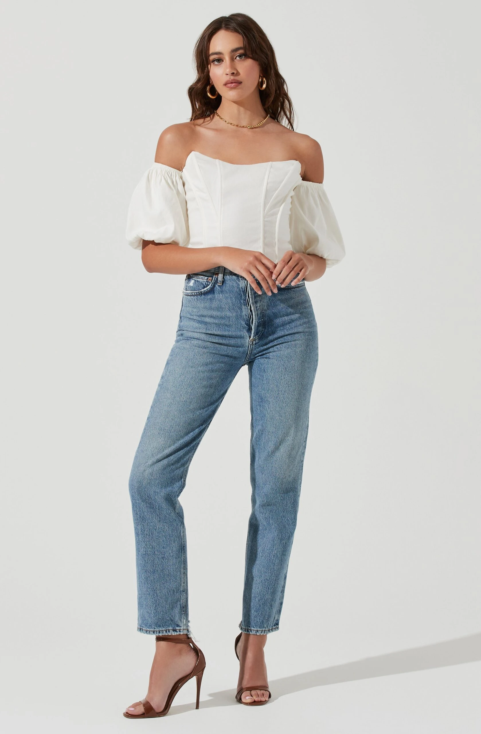 Be the first to review “Lima Off Shoulder Corset Bubble Sleeve Top” Cancel reply
