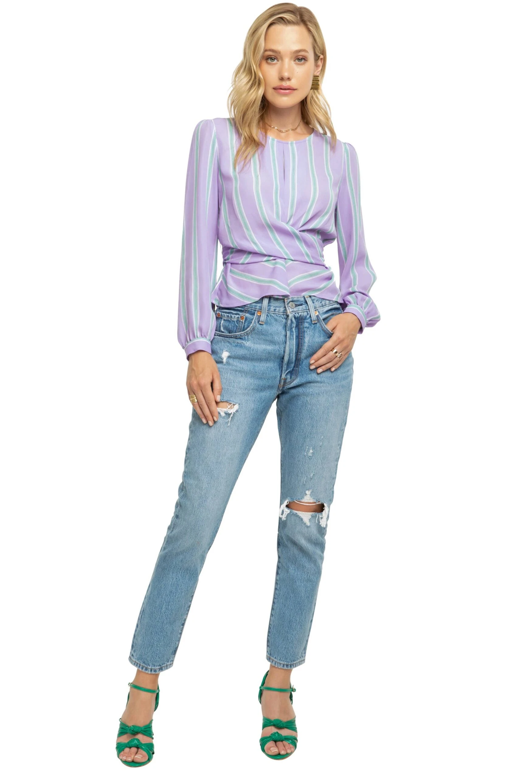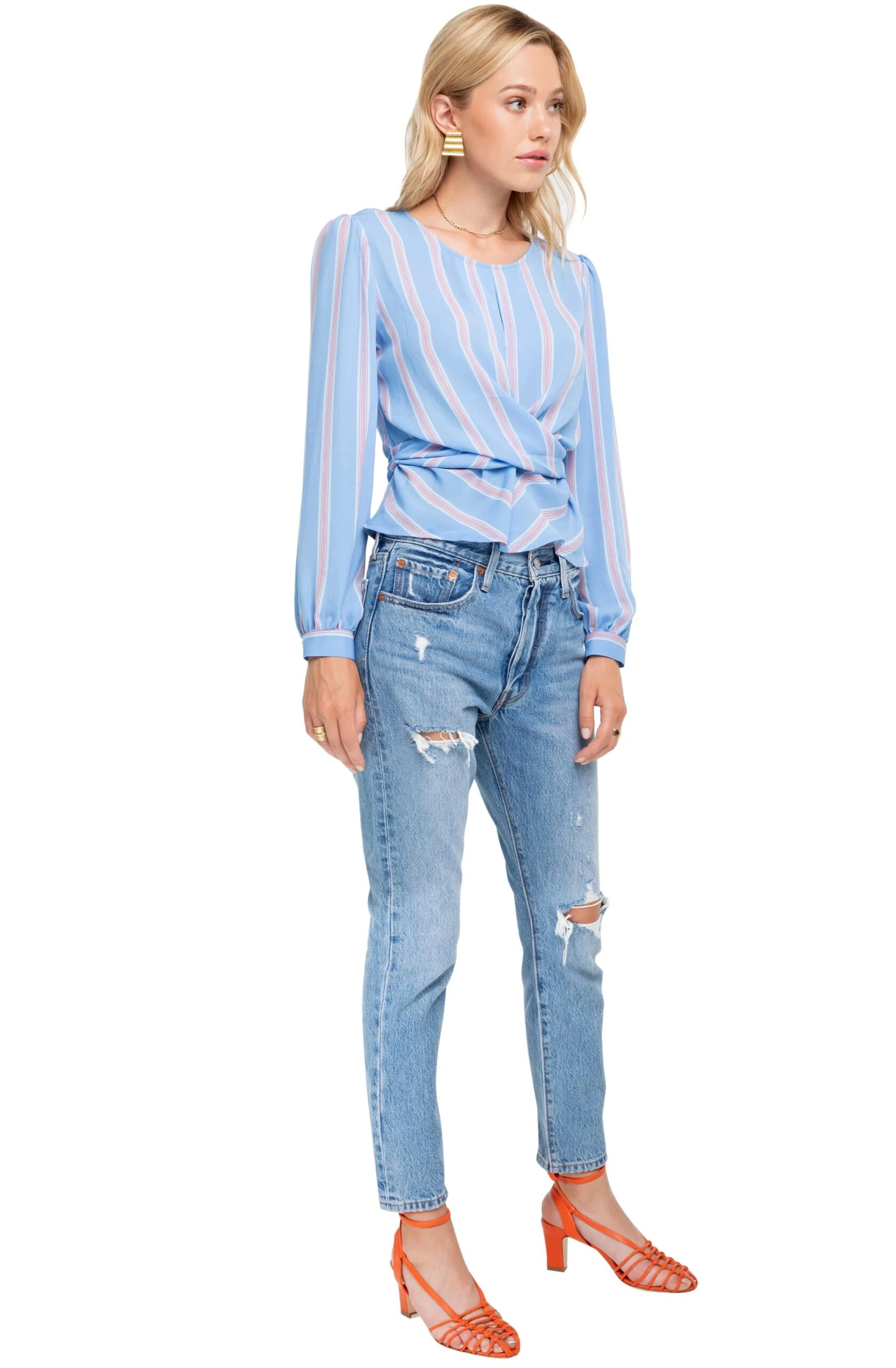 100%, Polyester Length: 21 5/8″ (Size M), Button Closure, Dry Clean Only, Striped Wrap Blouse, Tie Back, Model is Wearing Size S, Model’s Measurements: Height 5’9″ // Bust 32″ // Waist 24″ // Hips 34.5″, Fits True to Size, Style#ACT15021