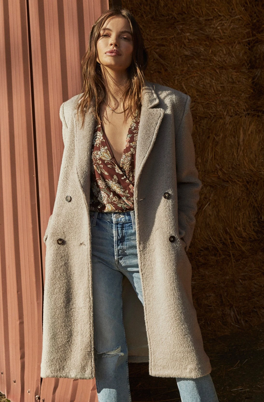Meet your new favorite bodysuit! The Odette features a V neckline that leads to a surplice front. Ruffle shoulders descend to long sleeves.