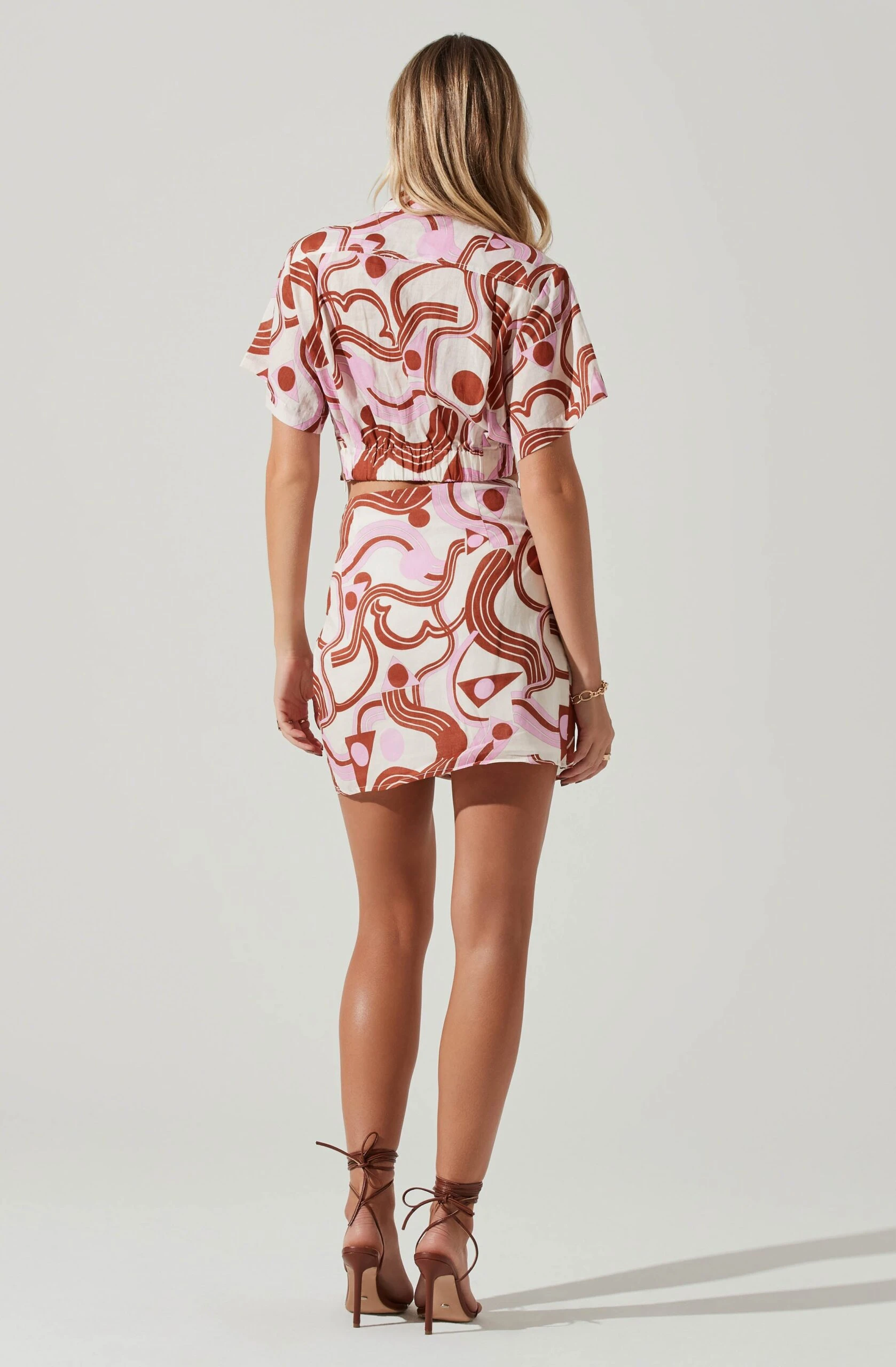 Look your fashionable best with this Oriana Mini Skirt! The wrap design and abstract print give it a modern, stylish look that’s sure to turn heads. You’ll be rockin’ this skirt everywhere!