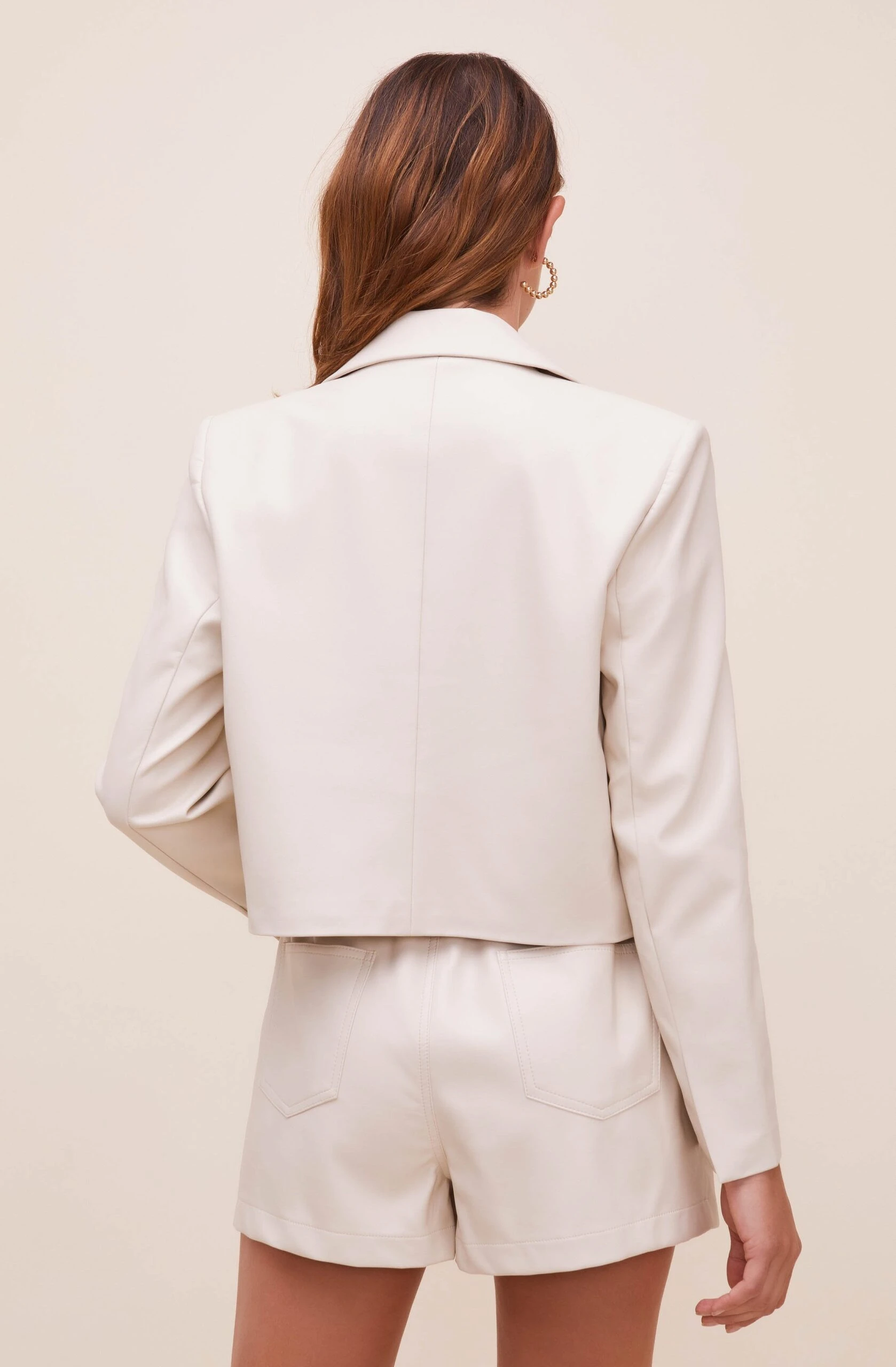 Bringing you new levels of chic. The Yaremi Jacket features a faux leather construction that starts with a notched collar and descends to a single button closure at the front. Long sleeves. Cropped hem. Single flap pocket accent.